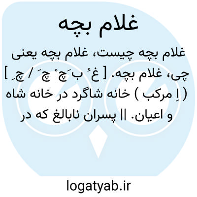 غلام بچه. [ غ ُ ب َچ ْ چ َ / چ ِ ] ( اِ مرکب ) خانه شاگرد در خانه شاه و اعیان. || پسران نابالغ که در حرم شاهان قاجار به کارهایی گماشته بودند مانند ایچ اُغلان سرای سلاطین عثمانی. پیشخدمتهای خرد از خاندان اعیان و شاهزادگان که در اندرون و حرمخانه ٔپادشاهان قاجار به خدمت اشتغال داشتند. || کودک. ریدک. ( لغت محلی شوشتر نسخه خطی متعلق به کتابخانه سازمان لغت نامه ذیل رندک ). وصیف. ( دهار ).