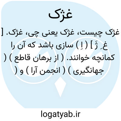 (غَ ژَ ) (اِ. ) = غجک. غچک. غیچک. قیچک: سازی است از مطلقات ذوات - الاوتار و آن دارای کاسه ای است و بر سطح آن پوست کشند و به کمانه در عمل آورند و بر روی آن ده وتر (سیم ) بندند.