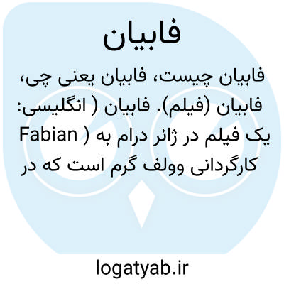 فابیان (فیلم). فابیان ( انگلیسی: Fabian ) یک فیلم در ژانر درام به کارگردانی وولف گرم است که در سال ۱۹۸۰ منتشر شد. از بازیگران آن می توان به هانس پیتر هالواکس، بریگیته میرا، ایوان دسنی، چارلز رینر، و جولی فلیکس اشاره کرد.