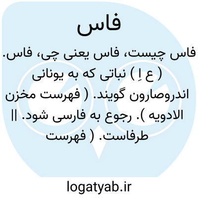 فاس. ( ع اِ ) نباتی که به یونانی اندروصارون گویند. ( فهرست مخزن الادویه ). رجوع به فارسی شود. || طرفاست. ( فهرست مخزن الادویه ).