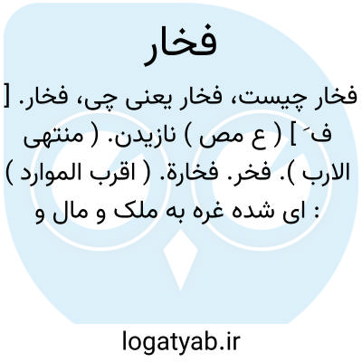 دین عرب را پناه ملک عجم را فخار.خاقانی.|| نازیدن به خوی نیکو. ( منتهی الارب ). خودستایی به خصال و مباهات به مناقب و مکارم از نسب و حسب و جز آن چه در خود و چه در پدران. ( اقرب الموارد ). || افزون داشتن کسی را برکسی در فخر. ( منتهی الارب ). تفضیل کسی بر کسی در فخر. ( اقرب الموارد ). رجوع به فخر شود.