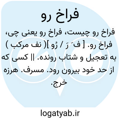 فراخ رو. [ ف َ رَ / رُو ]( نف مرکب ) به تعجیل و شتاب رونده. || کسی که از حد خود بیرون رود. مسرف. هرزه خرج. ( برهان ).