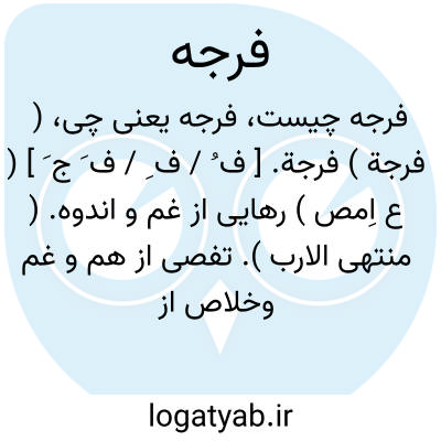 ( فرجة ) فرجة. [ ف ُ / ف ِ / ف َ ج َ ] ( ع اِمص ) رهایی از غم و اندوه. ( منتهی الارب ). تفصی از هم و غم وخلاص از دشواری: هو لک فرجة؛ أی فرج. ( اقرب الموارد ). از تنگی و دشواری بیرون شدن. ( غیاث ):
