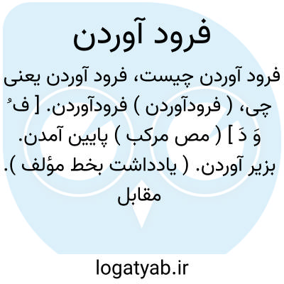 ( فرودآوردن ) فرودآوردن. [ ف ُ وَ دَ ] ( مص مرکب ) پایین آمدن. بزیر آوردن. ( یادداشت بخط مؤلف ). مقابل برآوردن: