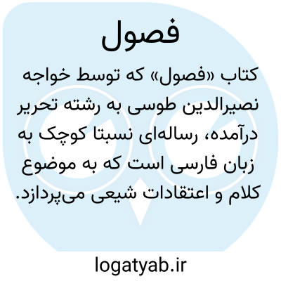 [ویکی نور] فصول، اثر خواجه نصیرالدین طوسی، رساله نسبتا کوچکی است به زبان فارسی در باب کلام و اعتقادات شیعی که به‎همراه ترجمه تازی آن از رکن‎الدین محمد بن علی گرگانی استرآبادی (زنده در 697 و 728ق)، توسط محمدتقی دانش‎پژوه، چاپ و عرضه شده است.