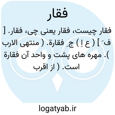 ( اسم ) جمع فقاره. مهره های پشت مهره های ستون فقرات. یا فقار ظهر. مهره های پشت. یا فقار عنق. مهره های گردن. یا فقار قطن. مهره های کمر.