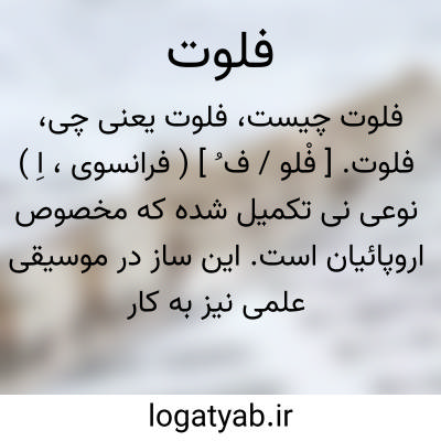 فلوت. [ فْلو / ف ُ ] ( فرانسوی، اِ ) نوعی نی تکمیل شده که مخصوص اروپائیان است. این ساز در موسیقی علمی نیز به کار برده میشود. با فلوت بسهولت میتوان صداهای مختلف را ایجاد کرد ولی چون فاقد پرده های مخصوص موسیقی ماست نواختن نغمه های ایرانی در روی این ساز مشکل است. ( فرهنگ فارسی معین ).