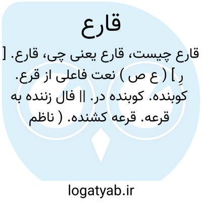 ( اسم ) ۱ - کوبنده ( در و جز آن ) ۲ - فال زننده بقرعه قرعه کشنده ۳ - موجد مقروع مقابل مقروع. چون دو جسم مصادمه کنند هر دو بصدا در آیند و اگر در هر دو موجبات اهتراز موجود باشد هر دو در مایه خود نغمه ایجاد کنند و نغمه هر دو به گوش رسد اما آنجا که اهتراز یک جسم مستهلک باشد نغمه مقروع شنیده شود