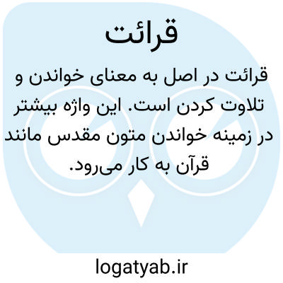 ۱ - ( مصدر ) خواندن ( کتاب روزنامه قر آن ) ۲ - ( اسم ) علمی است که در آن از صورتهای نظم کلام خدای تعالی از جهت وجوه اختلافات متواتر بحث می کند و مبادی آن مقدمات تواتری است. این علم از علوم عربیت کمک می گیرد و غرض از آن تحصیل ملکه ضبط اختلافات متواتر است و فایده آن حفظ کلام خداست تا تحریف و تغییر در آن راه نیابد.