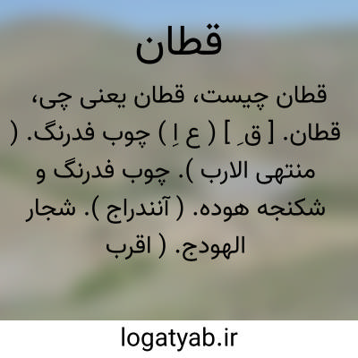 قطان. [ ق ِ ] ( ع اِ ) چوب فدرنگ. ( منتهی الارب ). چوب فدرنگ و شکنجه هوده. ( آنندراج ). شجار الهودج. ( اقرب الموارد ). ج، قُطُن. ( منتهی الارب ) ( اقرب الموارد ).