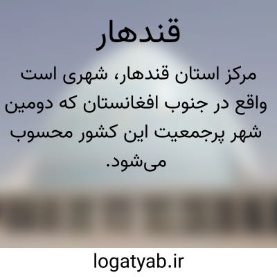 قندهار. [ ق َ دِ ] ( اِخ ) دهی است از دهستان گاودول بخش مرکزی شهرستان مراغه، واقع در 41هزارگزی جنوب مراغه و 3 هزارگزی خاور شوسه مراغه به میاندوآب. موقع جغرافیایی آن جلگه و معتدل است. سکنه آن 230 تن است. آب آن از رودخانه لیلان و چاه و محصول آن غلات، چغندر و شغل اهالی زراعت و صنایع دستی زنان جاجیم بافی است.راه مالرو دارد. ( از فرهنگ جغرافیایی ایران ج 4 ).