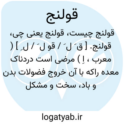 ( اسم ) دردی که غفله در ناحیه شکم خصوصا نواحی مجاور به قسمتهای مختلف قولون حاصل شود و در صورت شدت ممکنست به مرگ منتهی گردد. عرضه قولنج به طور کلی مربوط به ضایعات قسمتهای مختلف احشائ است و ممکنست مربوط به عفونت یا سوراخ شدن آپاندیس باشد که دراین صورت دردها بیشتر در ناحیه تحتانی راست شکم و حول و حوش ناف است و ممکنست مربوط بانسداد کیسه صفرا وی یا ضایعات کبدی باشد که باز دردها در طرف راست شکم و قسمتهای ریز حجاب حاجز و نواحی ستون فقرات احساس می شود. همچنین قولنج ممکنست به سبب ناراحتی های رحمی و دردهای شدید آنی مربوط به قاعده ( ماهانه ) زنان و یا مربوط به ضایعات کلیوی باشد. در هر یک از انواع قولنجها در صورت تشخیص ضایعه نام مربوط را می برند مثلا قولنج کبدی قولنج کلیوی قولنج روده یی ( که مربوط به انسداد یا تداخل قسمتی از روده باریک است ) قولنج کیسه صفرا و غیره. در هر حال قولنج با دردی شدید و ناراحت کننده همراه است.