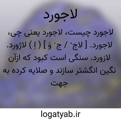 ( اسم ) ۱- سنگی است نسبه سخت ( سختیش بین ۵ تا ۶ درجه است ) و آبی رنگ که ترکیب شیمیاییش عبارت از فسفات آبدار طبیعی آلومینیوم و آهن ومنیزیم و کلسیم می باشد. وزن مخصوصش بین ۳٠۵ تا۳/۱۲ میباشد. این سنگ جزو سنگهای دگرگونی شد. زمین یافت میشود. چون سختی جالب توجه ( در حدود سختی شیشه ) و رنگ آبی خوشرنگی دارد در جواهر سازی بعنوان نگین انگشتر ی بکار میرود. همچنین آنرا کوبیده بصورت گرد ( پودر ) در میاورند و بعنوان رنگ آبی در نقاشی بکار میبرند و در لباسشویی هم جهت خوش رنگ کردن. پارچه ها ی سفید بکاربرده میشود سنگ لاجورد حجر لاجورد حجرالاجورد لاژورد یا سنگ کاشی. گونه ای لاجورد معدنی که از تجزیه و تخریب سنگ لاجورد در برخی معادن نزدیک کاشان و قم بدست میاید. این گونه لاجورد نرم و شبیه خاکها ی رستی است و سختی اولی خود را بکلی از دست داده است و در بازار نیز بنام لاجورد عرضه میشود. رنگ لاجورد مذکور آبی مایل به سیاه است. ۲- ( صفت لاجوردی ) برنگ لاجورد کبود نیلی: قدرش مروتی است براین سقف لاجورد فرش رفو گریست بر این فرش باستان. ( خاقانی. سج. ۳ ) ۳۱۱- سیاه تیره: یکی سخت سوگند شاهانه خورد بروز سپید و شب لاجورد... ( شا. لغ. )
