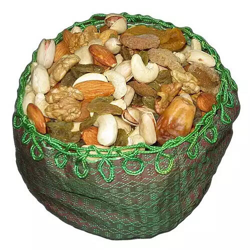 معمولاً از هفت میوهٔ خشک شامل: پسته، بادام، سنجد، کشمش، گردو، برگه هلو، انجیر و خرما که در مراسم آفرینگان ها، گاهنبارها، جشن خوانی، جشن نوزادی، در آیین سدره، کشتی بندی و دیگر جشن ها به میهمانان داده می شود.