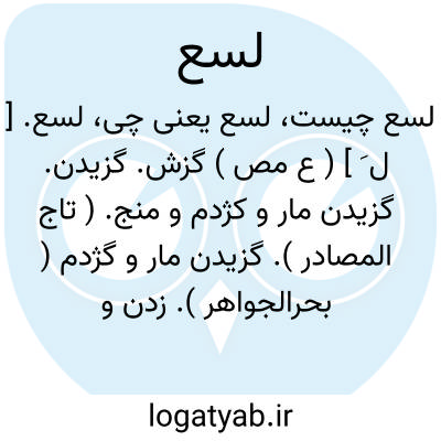 لسع. [ ل َ ] ( ع مص ) گزش. گزیدن. گزیدن مار و کژدم و منج. ( تاج المصادر ). گزیدن مار و گژدم ( بحرالجواهر ). زدن و گزیدن از دنبال چنانکه در زنبور و عقرب. گزیدن مار و کژدم. یا لسع نیش زدن صاحب نیش است و لدغ گزیدن به دهان. ( منتهی الارب ). قرص. || اذیت دادن کسی را به زبان و رنجانیدن. ( منتهی الارب ). کسی را بد گفتن. ( تاج المصادر ). || رفتن و سفر کردن. ( منتهی الارب ).