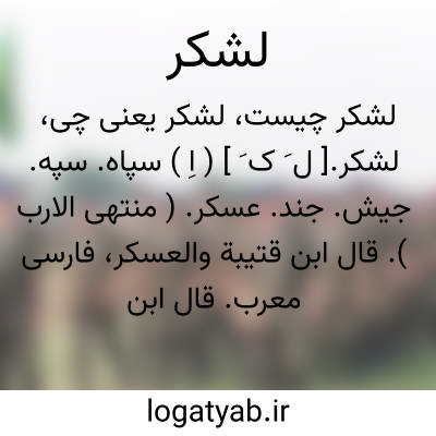 ( اسم ) ۱- مجموع. سپاهیان جیش قشون: در غمار دیار اسلام باوجود چنان لشکری کاثر وافر دلهای خواص و عوام حشم شکسته شد. ۲- واحدی نظامی که بطور متوسط شامل سه تیپ است ( اوایل دور. پهلوی ). یا لشکر پیاد. سنگین. شامل قسمتهای ذیل است: الف - سه هنگ پیاده. ب - گروهان حمل و نقل. پ - گروهان بهداری. ت - گروهان مهندسی. ث - گروهان باربری محمول. ج - سه گردان توپخان. ۱٠۵ میلیمتری. چ - یک گردان توپخان. ۱۵۵ میلیمتری. ح - سه گردان سواراسبی. خ - سه گردان سوار زرهی. یا لشکر جمع کردن. گرد آوردن سپاهیان: بر کیارق چون شفا یافت لشکر جمع کرد و بهمدان آمد و باتتش مصاف دادند...