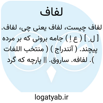 لفاف. [ ل ِ ] ( ع اِ ) جامه برونی که بر مرده پیچند. ( آنندراج ) ( منتخب اللغات ). لفافه. ساروق. || پارچه که گرد چیزی پیچند، چنانکه بسته پستی را.