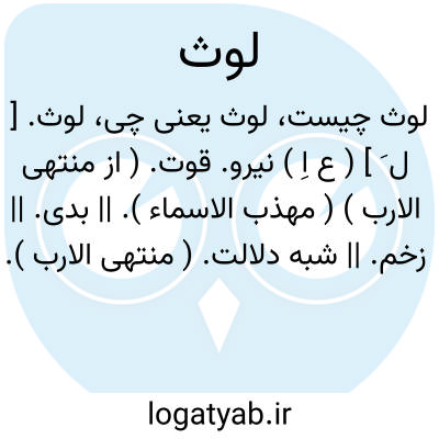 لوث. [ ل َ ] ( ع اِ ) نیرو. قوت. ( از منتهی الارب ) ( مهذب الاسماء ). || بدی. || زخم. || شبه دلالت. ( منتهی الارب ).