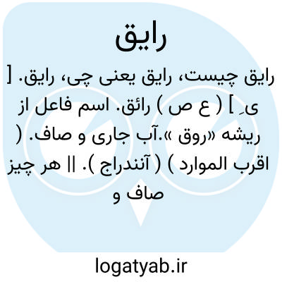 رایق. [ ی ِ ] ( ع ص ) رائق. اسم فاعل از ریشه «روق ».آب جاری و صاف. ( اقرب الموارد ) ( آنندراج ). || هر چیز صاف و لطیف. ( آنندراج ) ( از اقرب الموارد ). خالص و بی آمیغ. ( ناظم الاطباء ) ( منتهی الارب ). ج، روق، رَوْقة. ( از اقرب الموارد ). || مرد تهیدست. || آنچه ناشتا خورده شود از آب و طعام و جز آن. || آنچه بر ناشتا باشد. ( منتهی الارب ) ( ناظم الاطباء ): اتیته رائقاً لَم اطعم شیئاً،ای علی الریق؛ آمدم نزد او رائق که چیزی نخورده بودم، یعنی ناشتا. ( از اقرب الموارد ) ( از منتهی الارب ).
