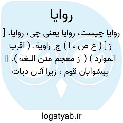 روایا. [ رَ ] ( ع ص، اِ ) ج ِ راویة. ( اقرب الموارد ) ( از معجم متن اللغة ). || پیشوایان قوم، زیرا آنان دیات از قبیله برمیدارند و گویند: قتلنا الروایا وابحنا الزوایا؛ ای قتلنا السادة و ابحنا البیوت. ( از معجم متن اللغة ). || ( اِ ) بمعنی روایات که ج ِ رِوایة است. ( از اشتینگاس ) ( از ناظم الاطباء ).