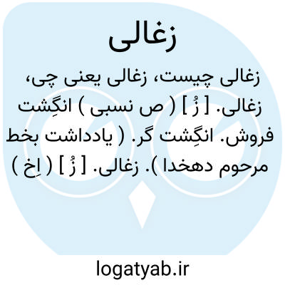 زغالی. [ زُ ] ( ص نسبی ) انگِشت فروش. انگِشت گر. ( یادداشت بخط مرحوم دهخدا ).