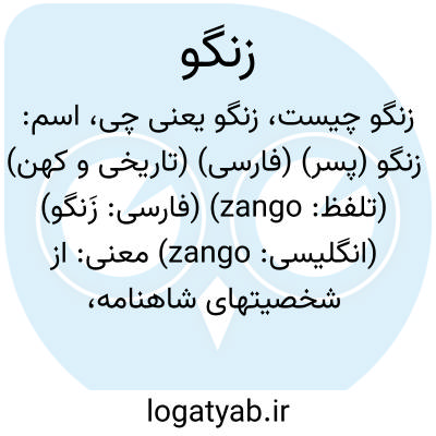 اسم: زنگو (پسر) (فارسی) (تاریخی و کهن) (تلفظ: zango) (فارسی: زَنگو) (انگلیسی: zango)