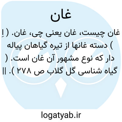 غان. ( اِ ) دسته غانها از تیره گیاهان پیاله دار که نوع مشهور آن غان است. ( گیاه شناسی گل گلاب ص 278 ). || نوع مشهور از دسته غانها. ( گیاه شناسی گل گلاب ص 278 ). || توس. رجوع به توس شود.