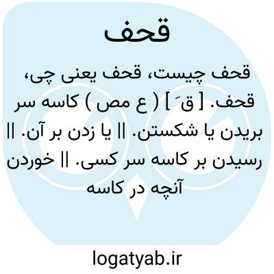 قحف. [ ق َ ] ( ع مص ) کاسه سر بریدن یا شکستن. || یا زدن بر آن. || رسیدن بر کاسه سر کسی. || خوردن آنچه در کاسه باشد. || بیرون آوردن آنچه در آوند است. || کشیدن اشکنه و جز آن را. || گندم دانه بر باد کردن و بردن هرچه باشد. ( منتهی الارب ) ( آنندراج ).