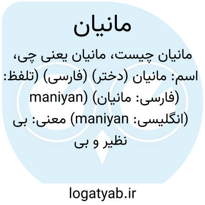 اسم: مانیان (دختر) (فارسی) (تلفظ: maniyan) (فارسی: مانیان) (انگلیسی: maniyan)