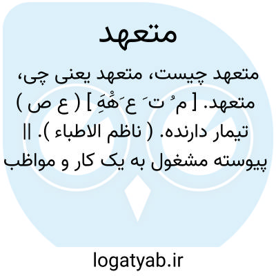 متعهد. [ م ُ ت َ ع َهَْهَِ ] ( ع ص ) تیمار دارنده. ( ناظم الاطباء ). || پیوسته مشغول به یک کار و مواظب در کار. ( ناظم الاطباء ). || هم عهد و عهد گیرنده و ضامن. ج، متعهدین. ( ناظم الاطباء ). آن که عهد و پیمان بندد و اجرای کاری رابعهده گیرد تا انجام دهد: بنده درگاه متعهد جمیع امور آن عالی جاهان و لشکریان و سپاهیان میشود. ( مجمل التواریخ گلستانه ص 201 ).