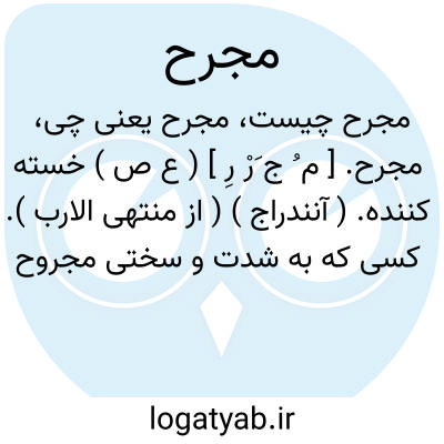 مجرح. [ م ُ ج َرْ رِ ] ( ع ص ) خسته کننده. ( آنندراج ) ( از منتهی الارب ). کسی که به شدت و سختی مجروح می کند. ( ناظم الاطباء ) ( از اقرب الموارد ).