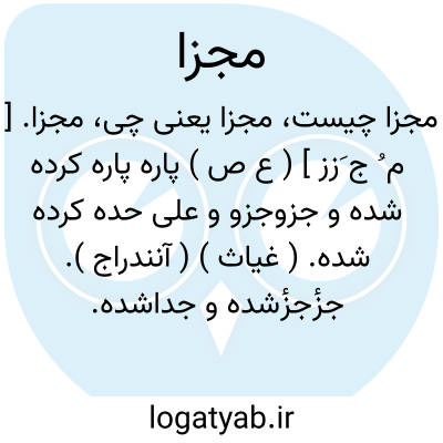 مجزا. [ م ُ ج َزز ] ( ع ص ) پاره پاره کرده شده و جزوجزو و علی حده کرده شده. ( غیاث ) ( آنندراج ). جزٔجزٔشده و جداشده. ( ناظم الاطباء ). تجزیه شده.این کلمه هم مانند «مبرا» به الف باید نوشته شود نه به یاء زیرا الف آن در اصل همزه بوده است. بنابراین نوشتن آن به صورت «مجزی » درست نیست. ( از نشریه دانشکده ادبیات تبریز سال اول شماره 10 ):
