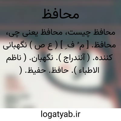 ( اسم ) نگاهبانی کننده حفظ کننده نگهبان جمع: محافظین. محافظت. ( مصدر ) ۱ - نگاهبانی کردن حفظ کردن. ۲ - نگاه داشتن.