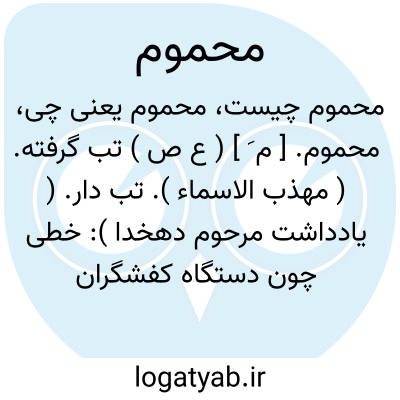 محموم. [ م َ ] ( ع ص ) تب گرفته. ( مهذب الاسماء ). تب دار. ( یادداشت مرحوم دهخدا ): خطی چون دستگاه کفشگران پریشان عبارتی چون هذیان محموم نامفهوم. ( از نفثة المصدور زیدری ).