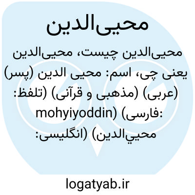 معنی: زنده کننده و حیات بخش دین، ( اَعلام ) ) محیی الدین ( = ابوسعید محمّد نیشابوری ) [، قمری] فقیه و مؤلف ایرانی، که در حمله ی ترکان غز کشته شد، از آثار اوست: الانتصاف فی مسایل الخلاف والمحیط فی شرح الوسیط، هر دو به عربی، ) ابوبکر محیّی الدین محمّد، ملقب به ابن عربی: [، قمری]، ادیب، شاعر و صوفی آندلسی، که در کشورهای اسلامی سفرهای زیادی کرد، از آثار اوست: فتوحات مَکیّه و فصوص الحِکَم، ) محیی الدین ملقب به اورنگ زیب ( = عالمگیر ): شاهزاده و امپراتور [، میلادی] گورکانی هند، پسر شاه جهان، که پدر و برادر خود را کشت، درباری باشکوه برپاکرد، قلمرو خود را گسترش داد و بر غیر مسلمانان سخت گرفت