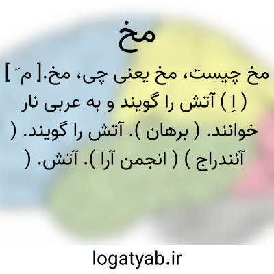 مخ.[ م َ ] ( اِ ) آتش را گویند و به عربی نار خوانند. ( برهان ). آتش را گویند. ( آنندراج ) ( انجمن آرا ). آتش. ( فرهنگ رشیدی ). آتش و نار. ( ناظم الاطباء ):