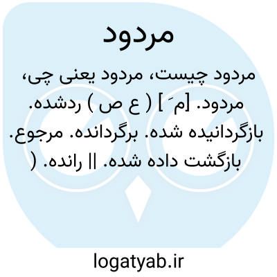 ( اسم ) ۱- بازگردانیده. ۲- رد شده مطرود. ۳- در امتحان توفیق نیافتن جمع: مردودین.