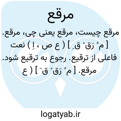 مرقع. [ م ُ رَق ْ ق ِ ] ( ع ص، اِ ) نعت فاعلی از ترقیع. رجوع به ترقیع شود.