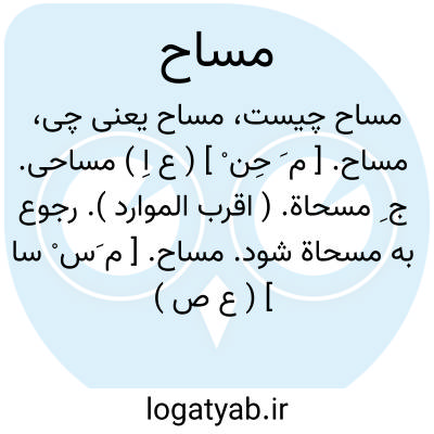 که جسم تو ز بخارست و پر تو ز ریاح.مسعودسعد.عمران گفت... تو به دو مسّاح و زمین پیمای بر من حکم میکنی. ( تاریخ قم ص 106 ). بعد از عرض به خدمت اقدس یا وزیر دیوان اعلی، مقرر می گردد که وزراء و عمال به اتفاق ریّاع و مسّاح ومحرران صاحب وقوف به محال مزبوره رفته... ( تذکرة الملوک چ دبیرسیاقی ص 45 و 46 ). || پلاس فروش. ( دهار ). رجوع به مِسح شود.