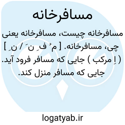 مسافرخانه. ( اِ مرکب ) جایی که مسافر فرود آید. جایی که مسافر منزل کند. مهمان خانه و کاروانسرای و منزلگاه مسافر. ( ناظم الاطباء ). در تداول امروزه بین مسافرخانه و مهمانخانه فرق می گذارند، چنان که مسافرخانه محل اقامت و شب به سر بردن است، اما مهمانخانه جز از اقامت، غذا ( شام و نهار و صبحانه ) نیز برای استفادهٔ مهمانان دارد.