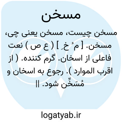 مسخن. [ م ُ خ ِ ] ( ع ص ) نعت فاعلی از اسخان. گرم کننده. ( از اقرب الموارد ). رجوع به اسخان و مُسَخِّن شود. || شخص پرجنب و جوش در سخن و حرکات خویش و آن لغتی است شامی. ( از اقرب الموارد ).