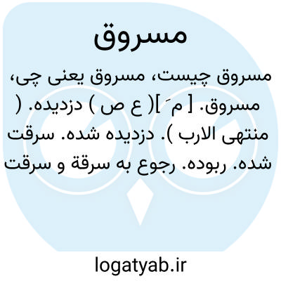 ( اسم ) ۱ - دزدیه شده بسرفت رفته: در شعر من نیابی مسروق و منتحل در نظم من نبینی ایطا و شایگان. ( رشیدو طواط ) ۲ - کسی که از اومالی دزدیده باشند.