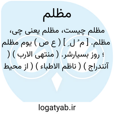 مظلم. [ م ُ ل ِ ] ( ع ص ) یوم مظلم؛ روز بسیارشر. ( منتهی الارب ) ( آنندراج ) ( ناظم الاطباء ) ( از محیط المحیط ) ( ازاقرب الموارد ). || تاریک. ( مهذب الاسماء ) ( غیاث ). شب تاریک. ( آنندراج ). بسیار تاریک و ظلمانی.( ناظم الاطباء ). تار. تاری. تاریک. ظلمانی. داج. مدلهم. تیره. ( یادداشت به خط مرحوم دهخدا ):