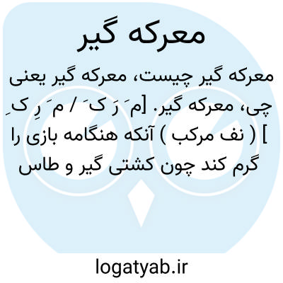 معرکه گیر. [م َ رَ ک َ / م َ رِ ک ِ ] ( نف مرکب ) آنکه هنگامه بازی را گرم کند چون کشتی گیر و طاس باز و سگ باز و میمون باز و مانند آن. ( آنندراج ). کشتی گیر و دیگر اهل بازی که در بازار مردم تماشایی را جمع کنند. ( غیاث ). ریسمان باز و شعبده باز. ( ناظم الاطباء ). هنگامه گیر. ( یادداشت به خط مرحوم دهخدا ). و رجوع به معرکه گرفتن شود.