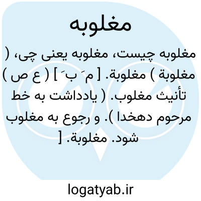 ( مغلوبة ) مغلوبة. [ م َ ب َ ] ( ع ص ) تأنیث مغلوب. ( یادداشت به خط مرحوم دهخدا ). و رجوع به مغلوب شود.