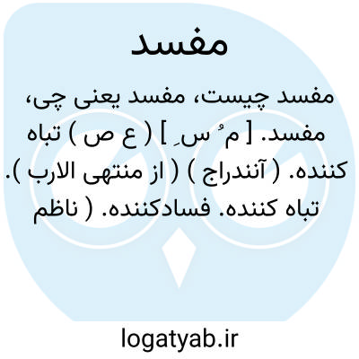 مفسد. [ م ُ س ِ ] ( ع ص ) تباه کننده. ( آنندراج ) ( از منتهی الارب ). تباه کننده. فسادکننده. ( ناظم الاطباء ). تباهکار. ( مهذب الاسماء ). فتنه ساز. فتنه انگیز.مضر. ضرررسان. مخرب. اهل فساد و زیان. گناهکار و مجرم. مرد فتنه جو و بدخواه. ( از ناظم الاطباء ). تبهکار.بدکار. مقابل مصلح. ( یادداشت به خط مرحوم دهخدا ): و اًن تخالطوهم فاًخوانکم واﷲ یعلم المفسد من المصلح. ( قرآن 220/2 ). قالوا یا ذاالقرنین اًن یأجوج و مأجوج مفسدون فی الارض. ( قرآن 94/18 ). ألا اًنّهم هم المفسدون ولکن لایشعرون. ( قرآن 12/2 ).