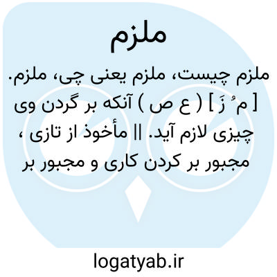 ملزم. [ م ُ زَ ] ( ع ص ) آنکه بر گردن وی چیزی لازم آید. || مأخوذ از تازی، مجبور بر کردن کاری و مجبور بر اقرار و مغلوب و محکوم.