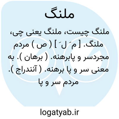 ملنگ. [ م َ ل َ ] ( ص ) مردم مجردسر و پابرهنه. ( برهان ). به معنی سر و پا برهنه. ( آنندراج ). مردم سر و پا برهنه و مجرد. ( فرهنگ رشیدی ):
