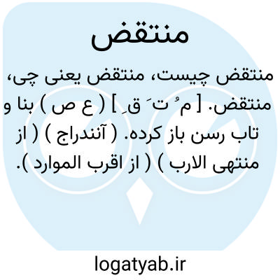 منتقض. [ م ُ ت َ ق ِ ] ( ع ص ) بنا و تاب رسن باز کرده. ( آنندراج ) ( از منتهی الارب ) ( از اقرب الموارد ). ریسمان تاب بازکرده و بنای ویران شده. ( ناظم الاطباء ). || پیمان شکسته. ( آنندراج ) ( از منتهی الارب ). عهد و پیمان شکسته شده. ( ناظم الاطباء ). رجوع به انتقاض شود. || باطل شونده. باطل: مذهب مالک و احمد... آن است که اگر به شهوت پاسد طهارت منتقض شود و اگر بی شهوت بود منتقض نشود. ( کشف الاسرار ج 2 ص 519 ). جماعتی از اصحاب وی برآنند که به پاسیدن این هر سه طهارت منتقض نشود. ( کشف الاسرار ج 2 ص 519 ).