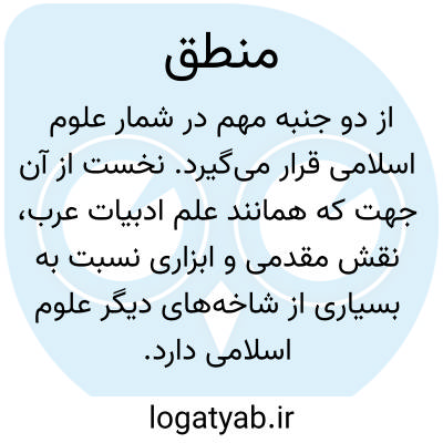 [ویکی فقه] منطق از دو نظر جزء علوم اسلامی محسوب می شود: اولاً به دلیل این که مانند ادبیات عرب نسبت به بسیاری از علوم اسلامی جنبه مقدمی دارد. ثانیاً: گرچه منطق ریشه در خارج از حوزه فرهنگ اسلام دارد و قبل از اسلام توسط ارسطا طالیس یونانی پایه گذاری و تدوین شده، اما بسیاری از قواعد آن توسط فلاسفه اسلامی طرح و تدوین گردیده و از این رهگذر تکمیل شده است.